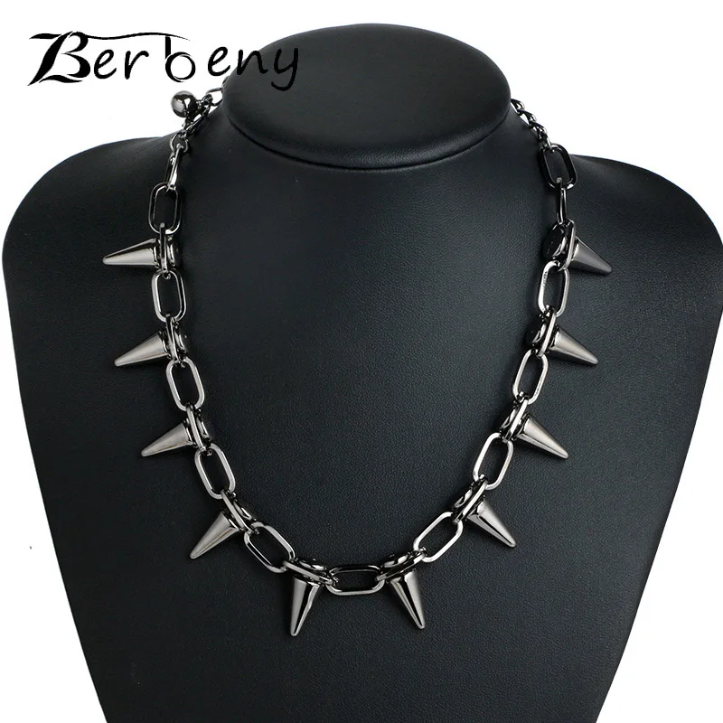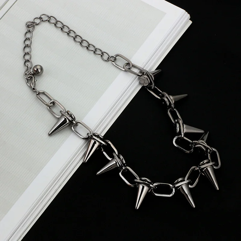 incredible Rivets CCB Material Chokers Punk Goth Handmade Choker Necklace Silver Spike Rivet Necklace EMO Rock