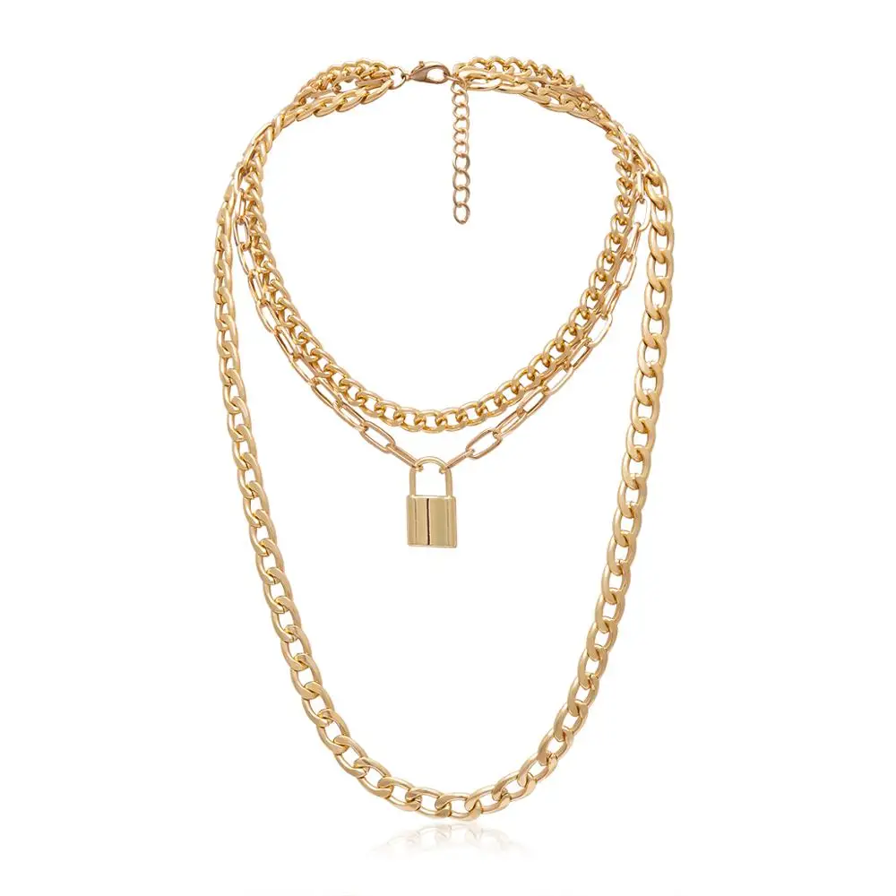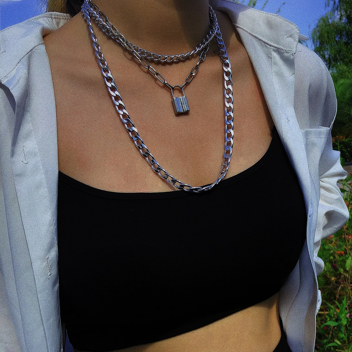 incredible SHIXIN Punk Layered Padlock Necklace for Women Hip Hop Gold/Silver Chain Chunky Necklaces Lock Pend