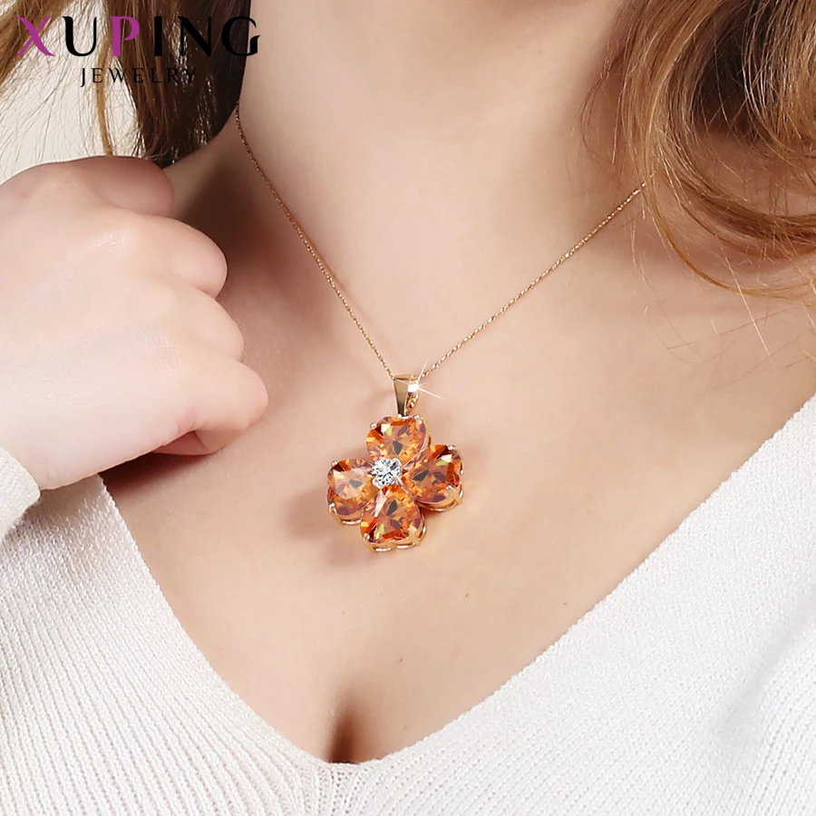 Finest Xuping Flower Design Fashion Style Gold Color Plated Necklace Pendant Women Jewelry for Valentine's